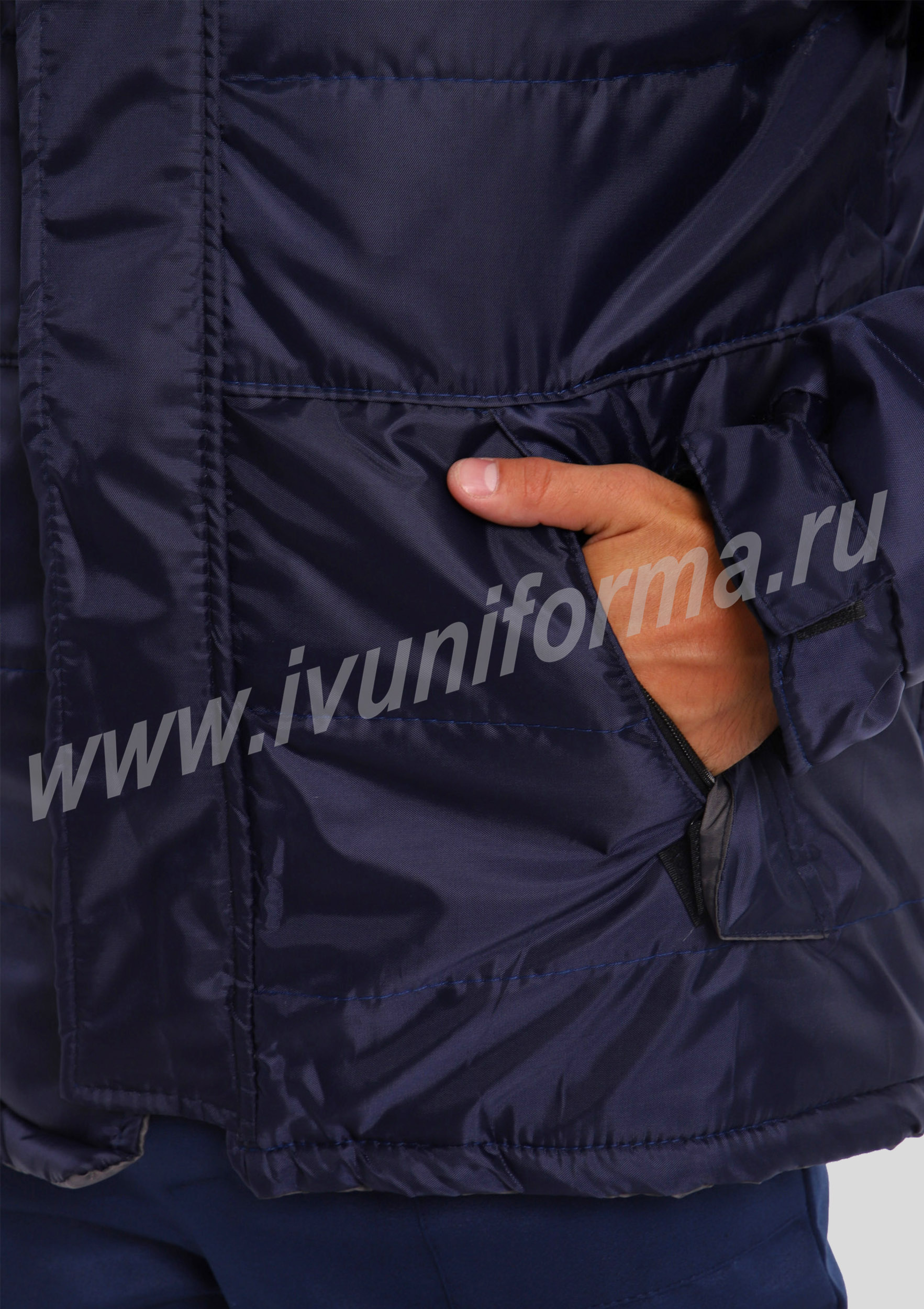 Куртка предназначена для инженерно-технических работников и представителей рабочих специальностей в качестве спецодежды для защиты от пониженных температур. Куртка выполнена с ветрозащитной планкой, застежкой на молнию и контактную ленту. Кокетка спинки и полочек выполнены из отделочной ткани, по шву притачивания кокеток спинки и полочек расположены светоотражающая полоса шириной 50 мм и светоотражающий кант, обеспечивающие защиту работающего человека в условиях пониженной видимости. Капюшон регулируется по лицевой части при помощи эластичного шнура и фиксаторов. Низ рукава выполнен на манжете, размер которого регулируется при помощи контактной ленты.